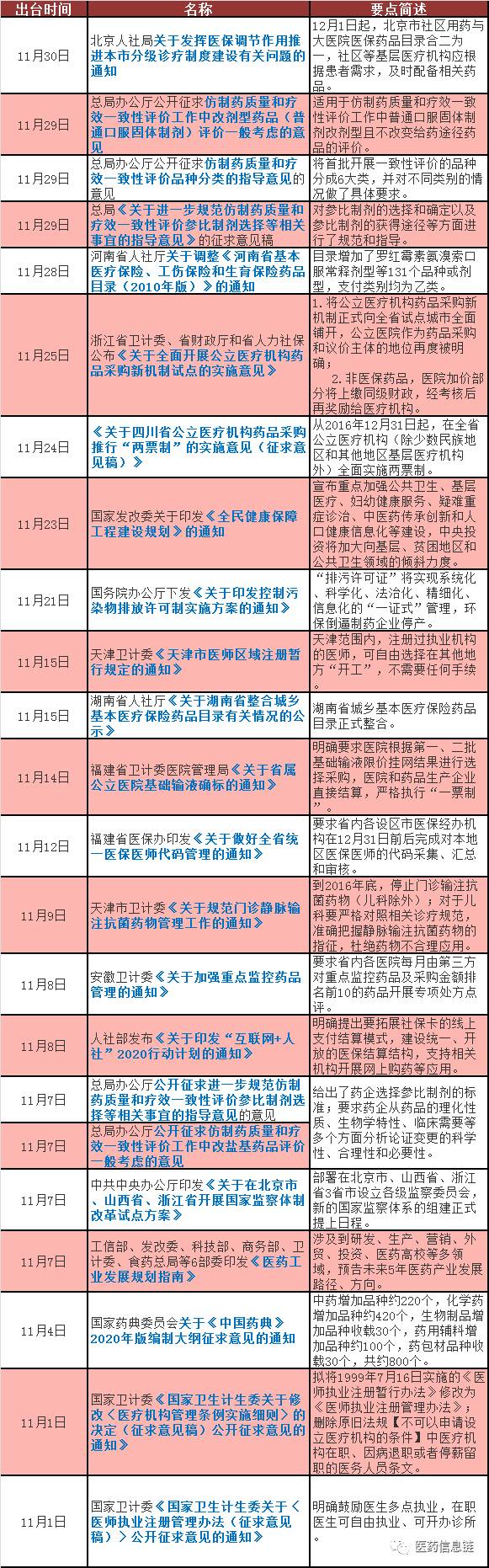 十一月医药政策解析全看点